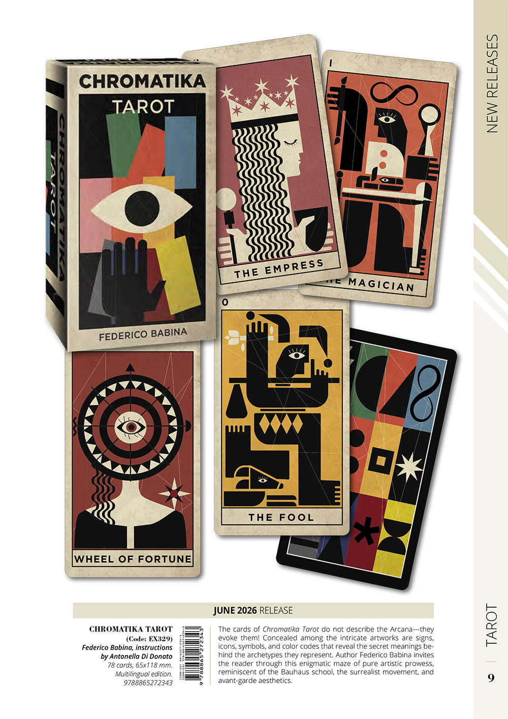 借鏡包浩斯、超現實主義與前衛藝術的美學精神,以俐落而大膽的線條與精緻構圖,揭示塔羅牌中潛藏的祕密。牌卡上所隱藏著符號、圖像、象徵與色彩編碼,層層揭露各個原型背後的深層意涵。此牌組以萊德偉特史密斯塔羅牌(Rider-Waite-Smith)體系為基礎,引領讀者穿越一座由純粹藝術表現構成的神祕迷宮,展開一場視覺與直覺交織的占卜旅程。而插畫之中的牌面設計並非「描述」秘儀,而是「喚起」秘儀本身。強調每次當下進行塔羅占卜感受的氛圍!