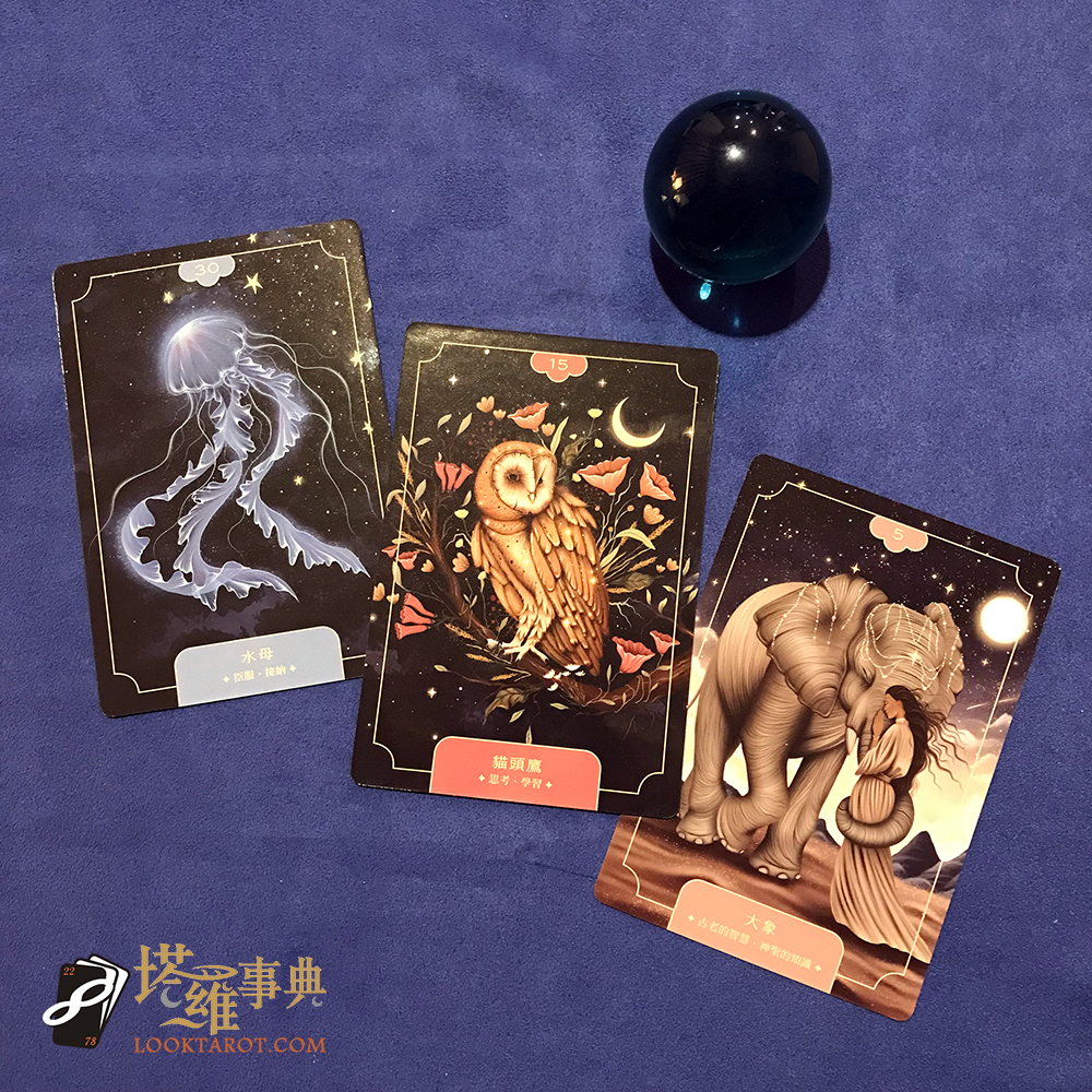 占卜進行到一半,如果塔羅牌訊息偏沉重、被占卜者開始情緒起伏,我也會再抽一張神諭卡,當作「情緒層面的翻譯」。比起一直用塔羅講理性分析,像這套《動物力量療癒卡》就比較是在幫被占卜者說出他心裡其實不敢講的感受,說說圖像、談談心情,聊聊過往,這相對的會讓氣氛柔軟許多,有了這樣的放鬆,一般人通常也更願意打開心防來暢所欲言。