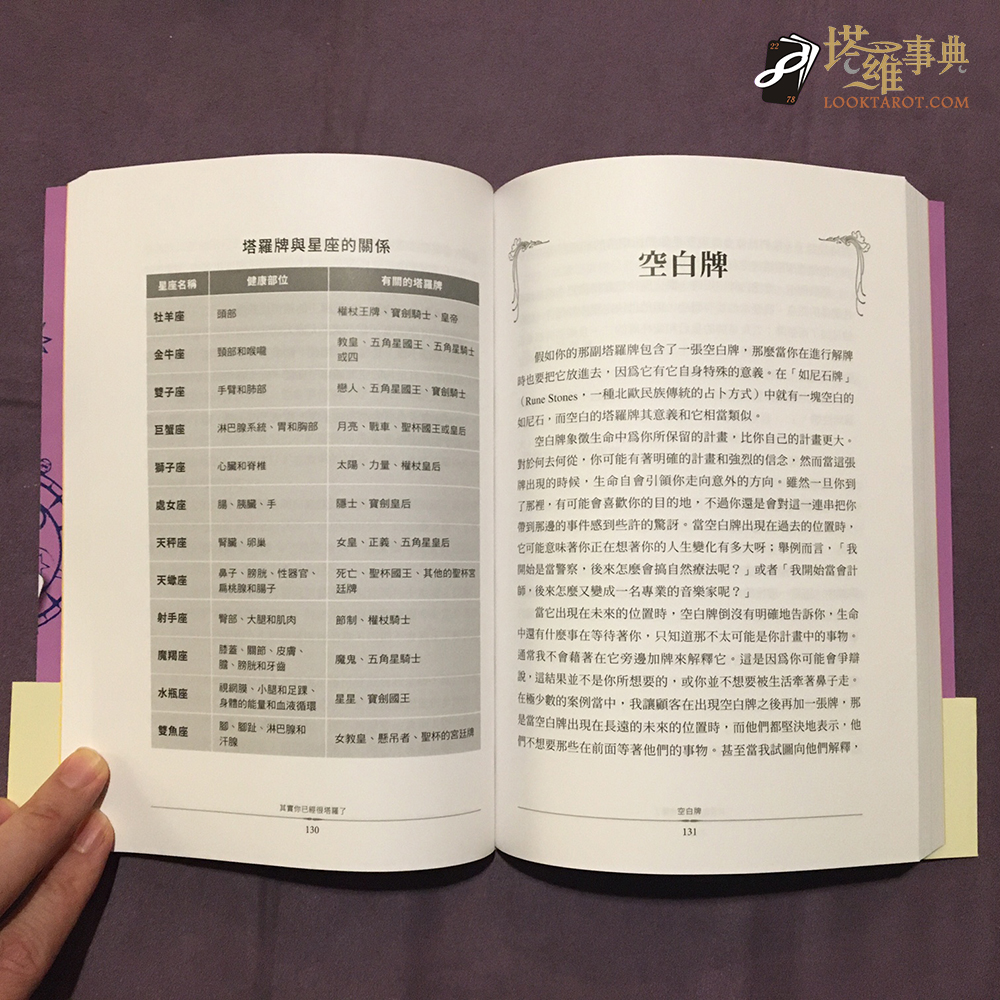 而明明英文書名是:The Tarot Revealed: A Beginner’s Guide,翻譯起來不是「塔羅牌揭秘:初學者指南」嗎?怎麼會是這麼充滿趣味的中文書名!《其實你已經很塔羅了》,真的取了一個好書名,簡單、直觀的告訴大家,手中已經有塔羅牌的你,想更深入塔羅的世界,不難不難,從生活上的每一個小細節都能發現,只是我們還沒察覺。